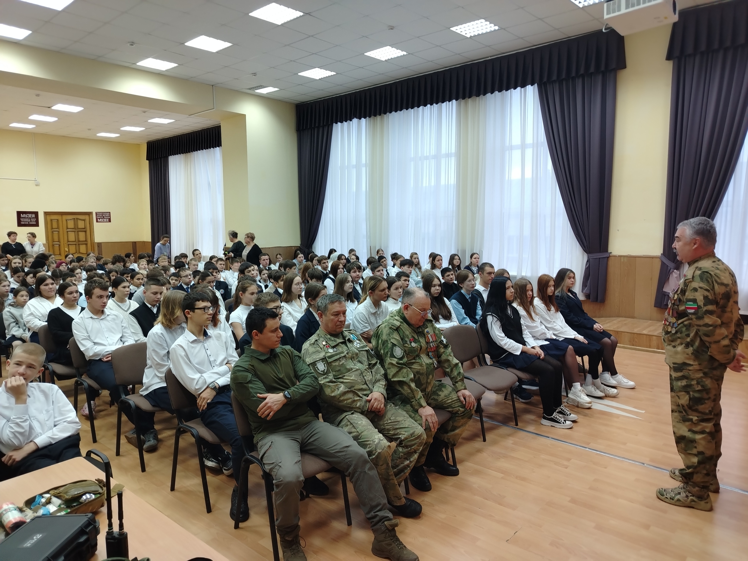 Сегодня в этот по-осеннему теплый декабрьский день, участники СВО посетили казанскую Школу №112, где встретились с учениками и поговорили на тему патриотизма и Специальной военной операции. Ребята познакомились с экипировкой российских бойцов, узнали о тактической медицине и поуправляли дроном.