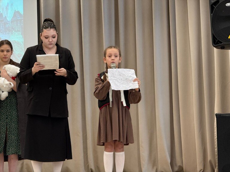 Ребята на сцене вживую передали атмосферу тех дней и трагически сложившиеся судьбы людей блокадного города. В дополнении к этому в школьном фое был оборудован уголок с экспонатами того времени, а лучшие рисунки учеников на тему блокады Ленинграда были размещены на специально отведенной школьной стене.